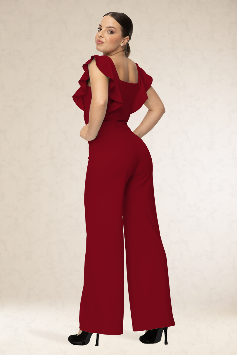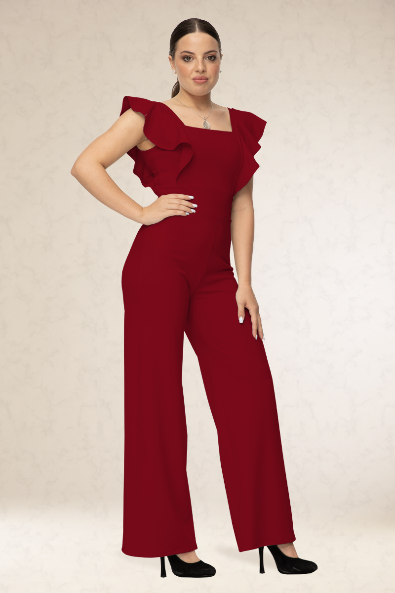 Derékban karcsúsított, overál. Különlegessége a vállain végig futó mutatós fodor.