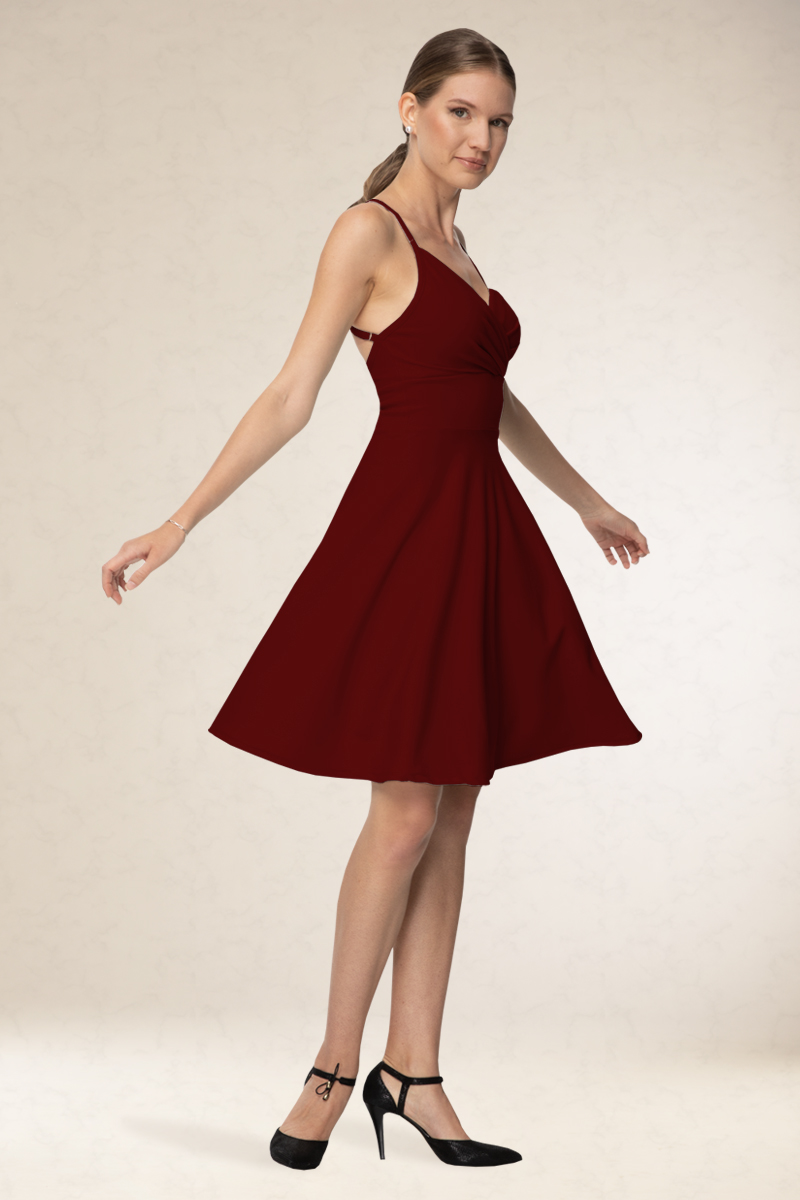 Derékban karcsúsított, spagetti pántos, rövid alkalmi ruha. Sokak kedvence, a nyitott háta miatt.