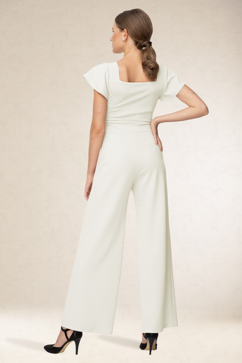 Derékban karcsúsított overál, rövid ujjával, szív alakú kivágással. Szolid nem kihívó fazon.