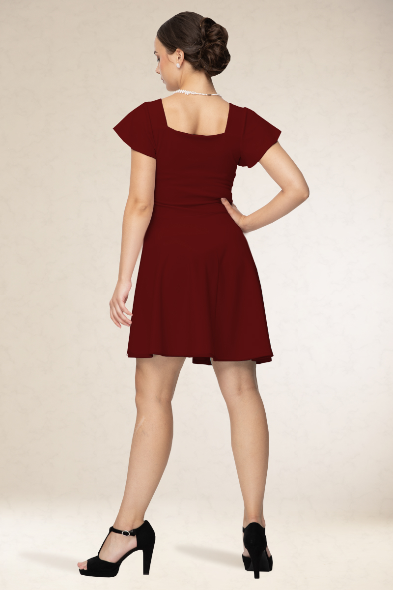 Rövid koktél ruha, rugalmas alapanyagból. Szív alakú kivágással, pici ujjával. Kényelmes viselet, nem gyűrődik. Ideális viselet álltalános iskolai ballagásra, szalagavatóra, de később is jól kihasználható.