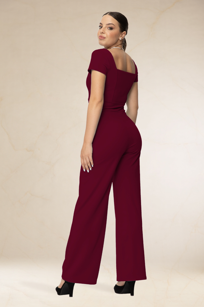 Derékban karcsúsított, szögletes kivágású, overál, rövid ujjával. Szolid nem kihívó fazon.