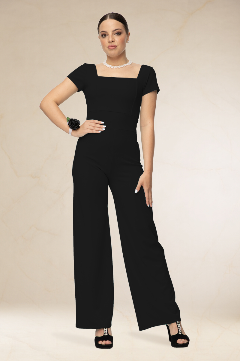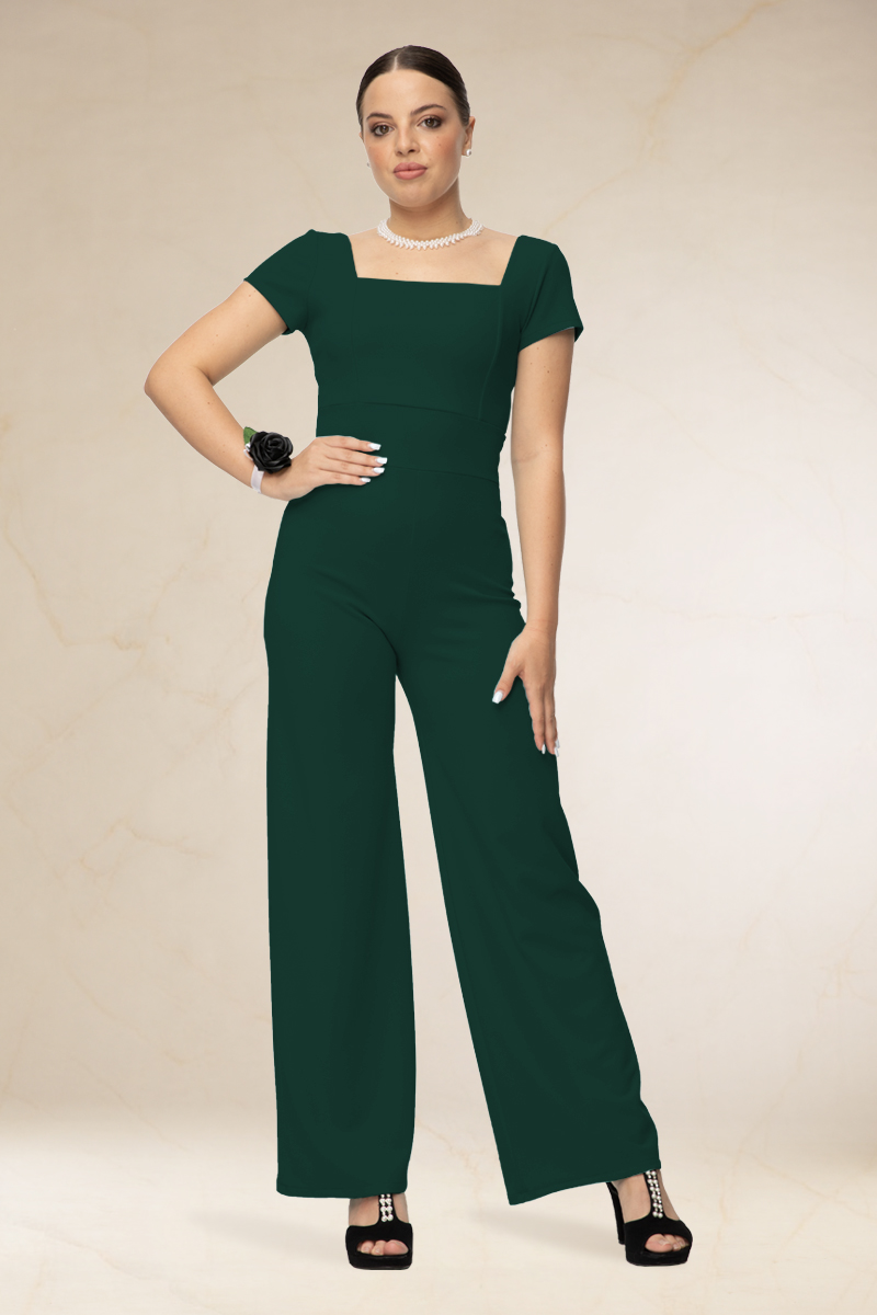 Derékban karcsúsított, szögletes kivágású, overál, rövid ujjával. Szolid nem kihívó fazon.