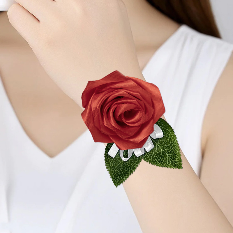 Szatén csuklódísz és kitűző.