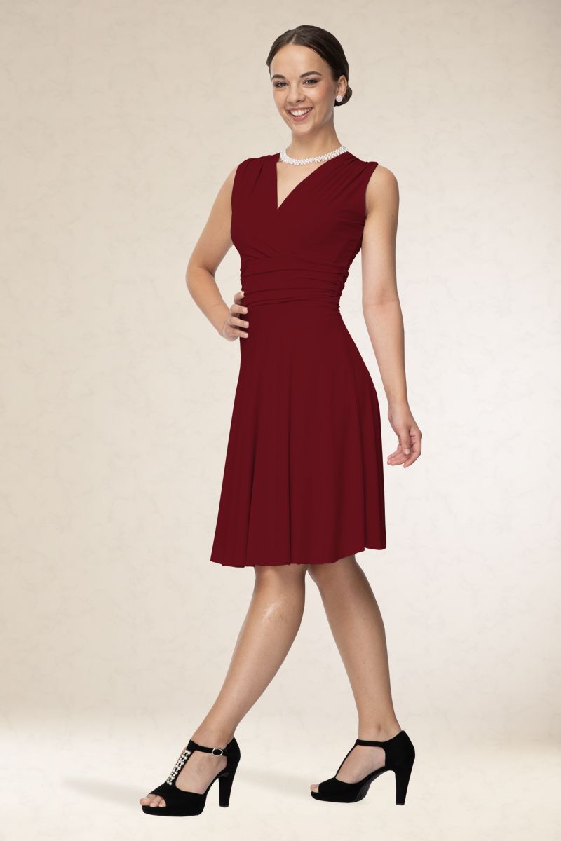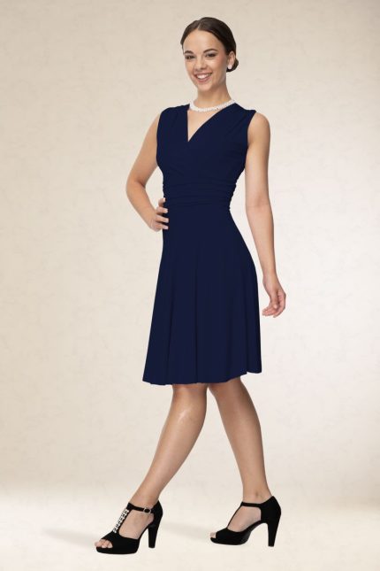 Vállán és derekán húzott, rövid koktélruha. Visszafogott, elegáns fazon. Minden méretben jól áll.