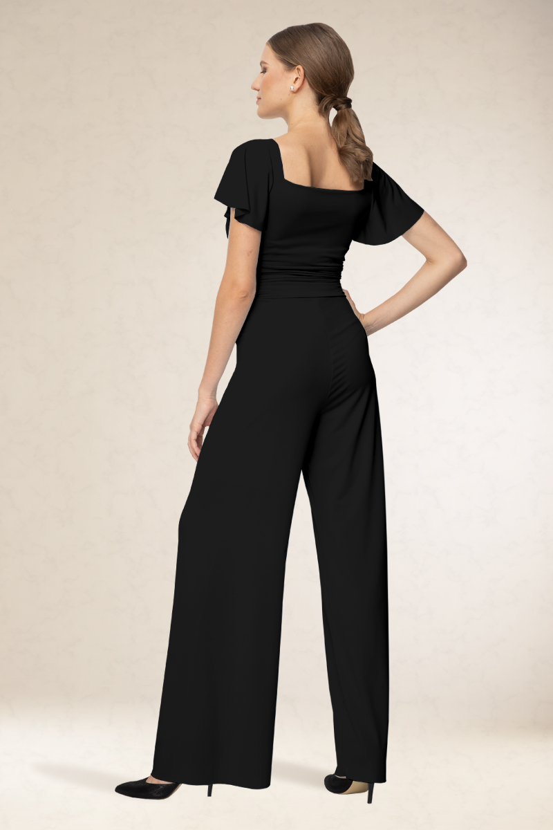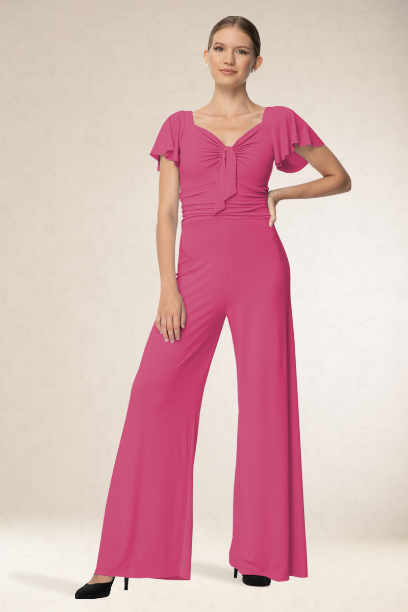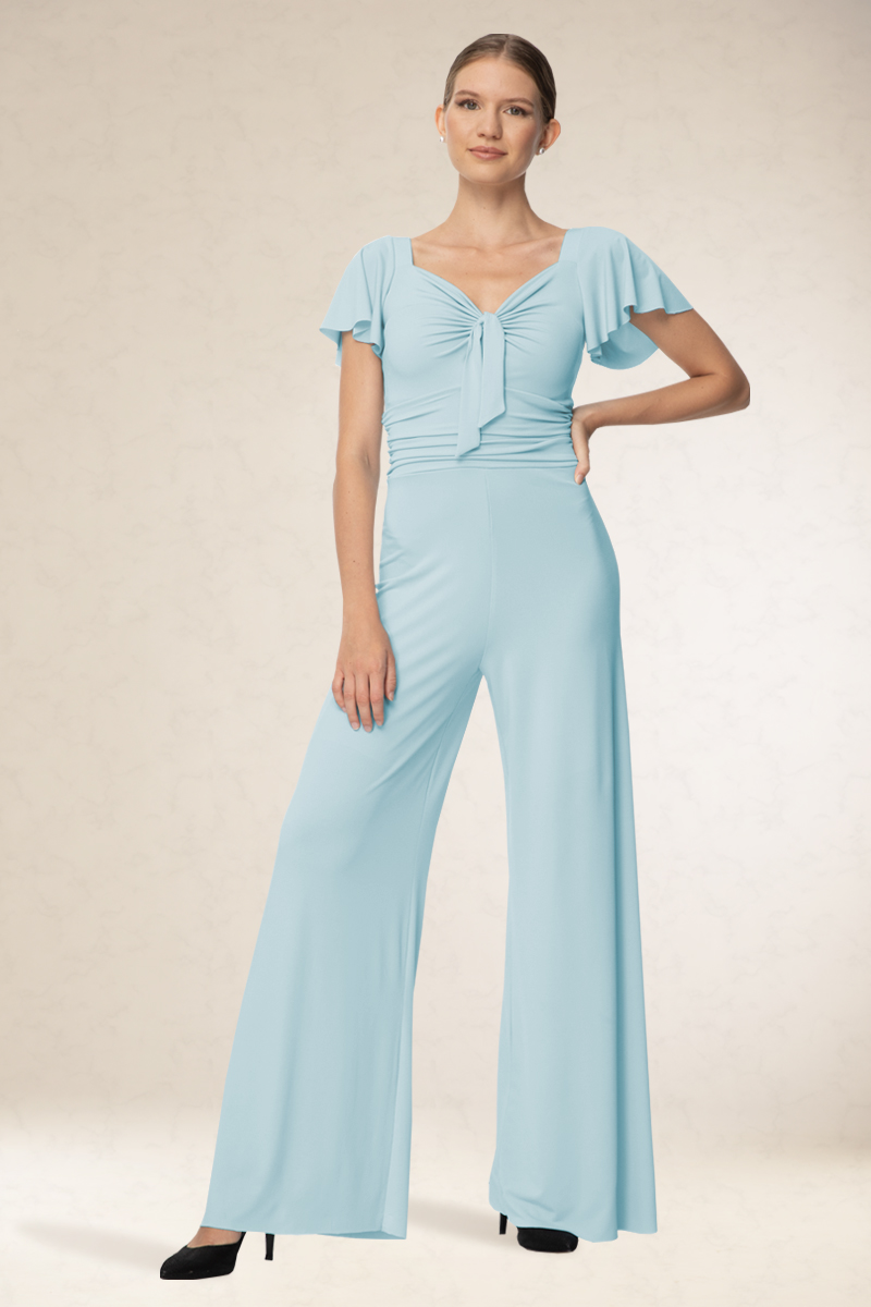 Visszafogott overál, rugalmas alapanyagból. A mellrész ötletes kialakítása miatt, mindenkinek jól áll. Kényelmes viselet. Könnyen kezelhető, nem gyűrődik. Ajánljuk szalagavatóra vagy ballagásra, sötétebb színeit színházba.