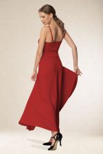 Spagetti pántos, derekán húzott, hosszú alkalmi ruha. Fiatalos, merészebb fazon.