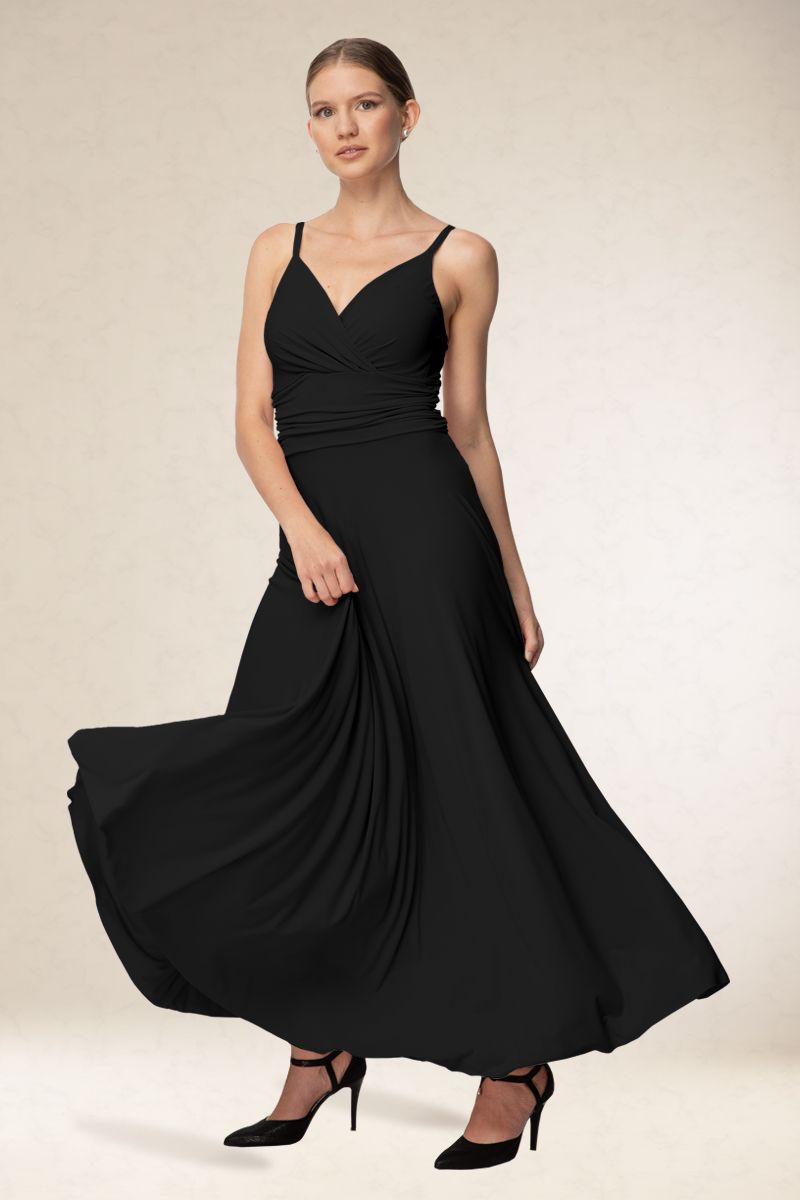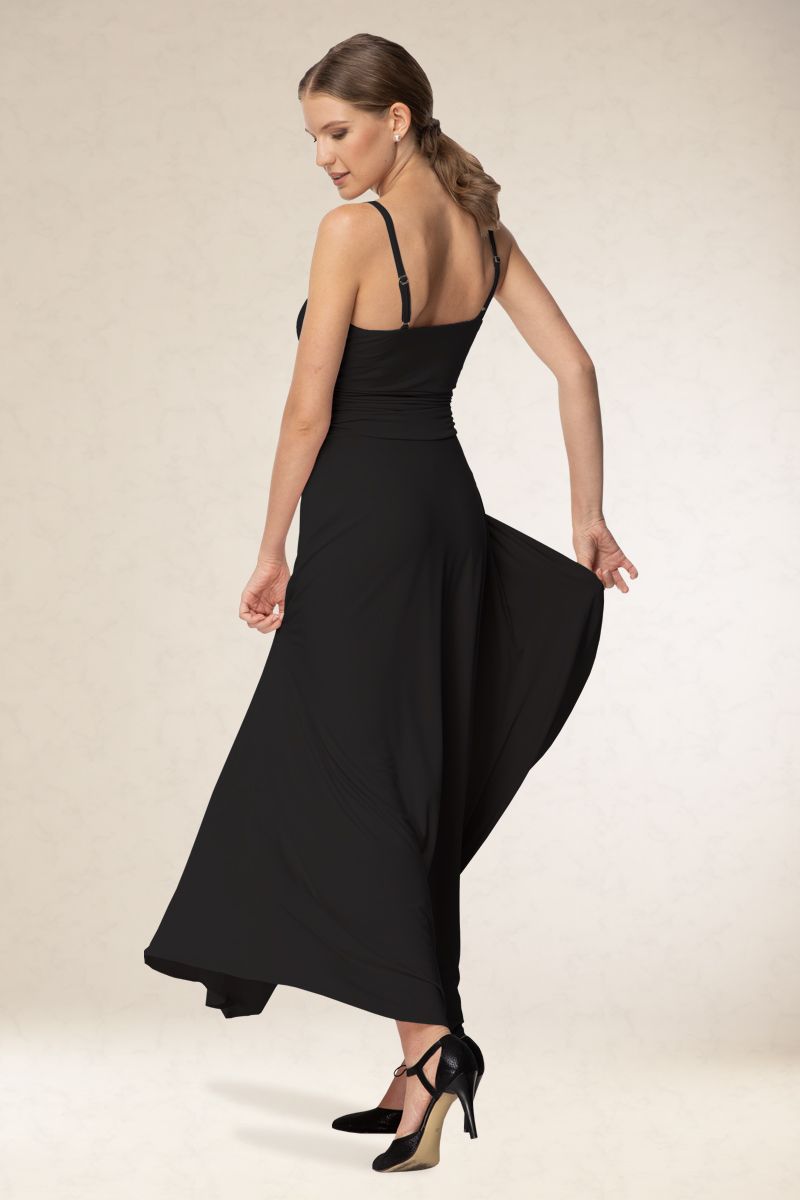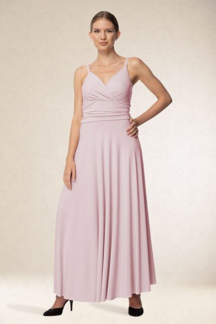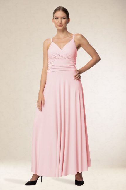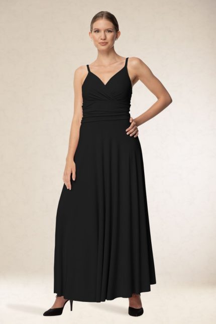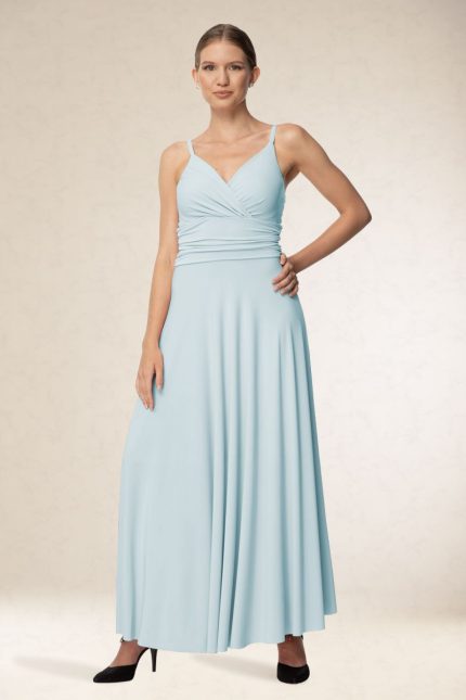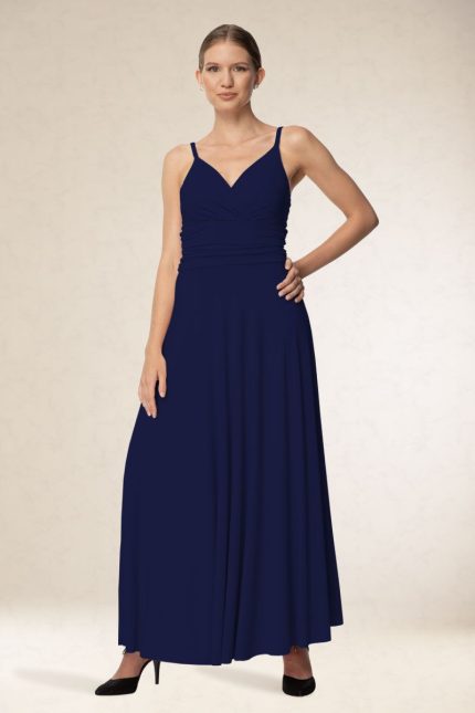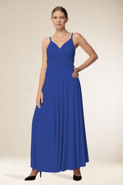 Spagetti pántos, derekán húzott, hosszú alkalmi ruha. Fiatalos, merészebb fazon.