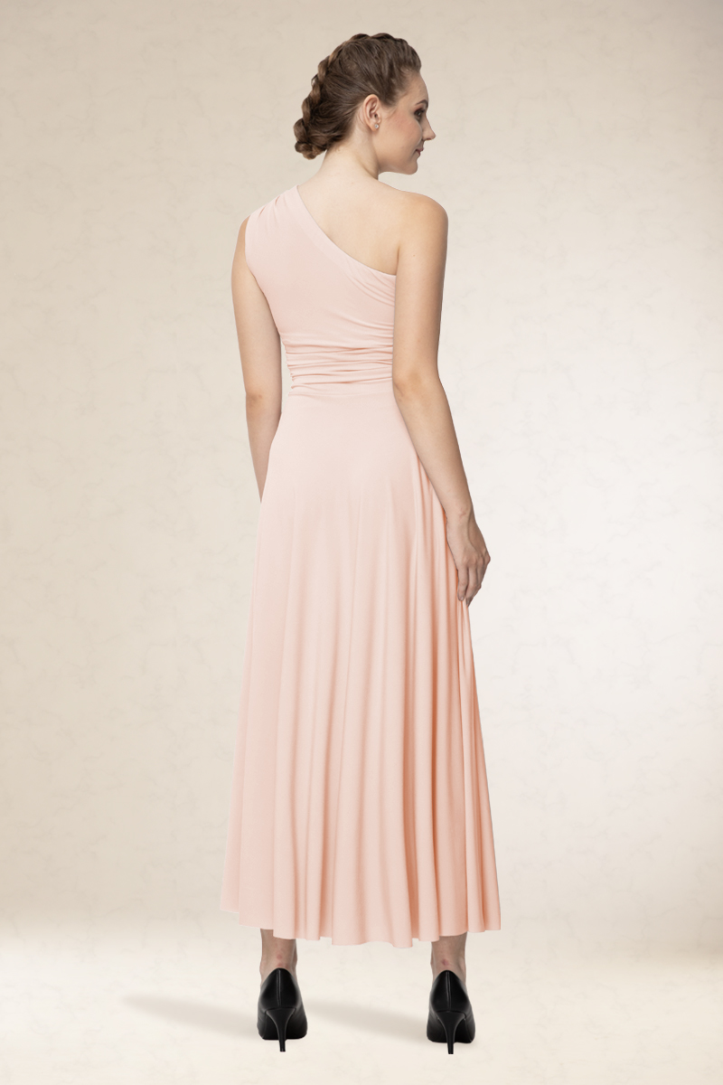 Hosszú alkalmi ruha, ferdevállas fazon, variálható díszítéssel. Kényelmes viselet. Könnyen kezelhető, nem gyűrődik. Ajánljuk szalagavatóra vagy koszorúslányoknak, sötétebb színeit színházba, vagy estélyre.