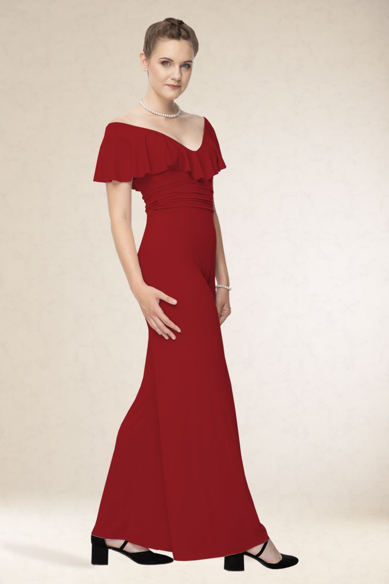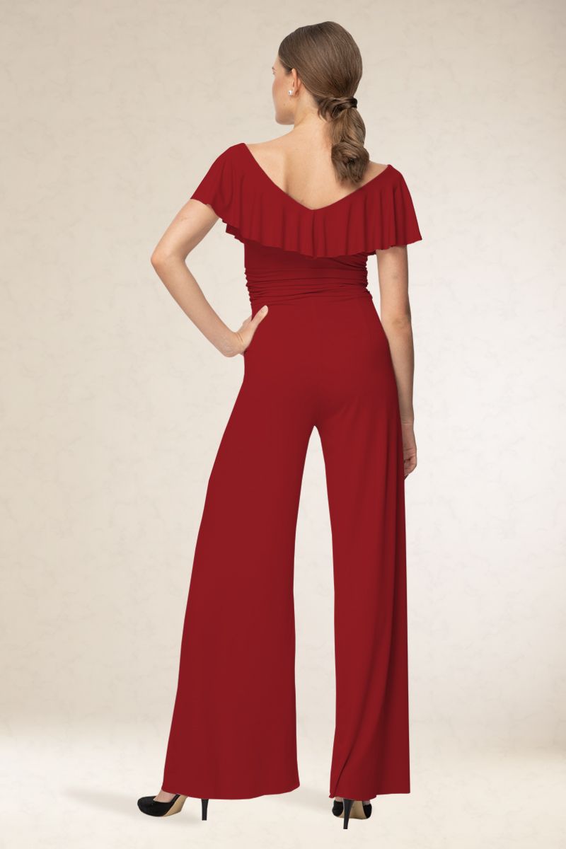 Elegáns overál, rugalmas alapanyagból, elején fodorral díszítve.